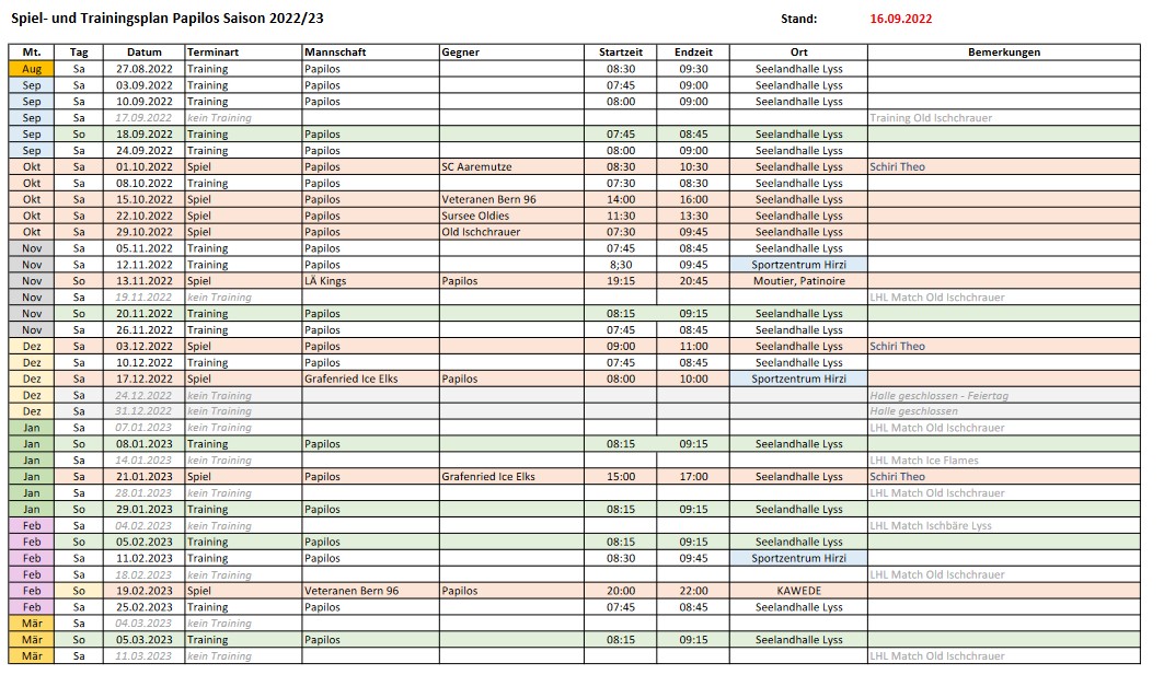 <html><span style=„color:blue;font-size:120%;“>Spiel- und Trainingsplan Papilos Saison 2022 / 2023</span></html>